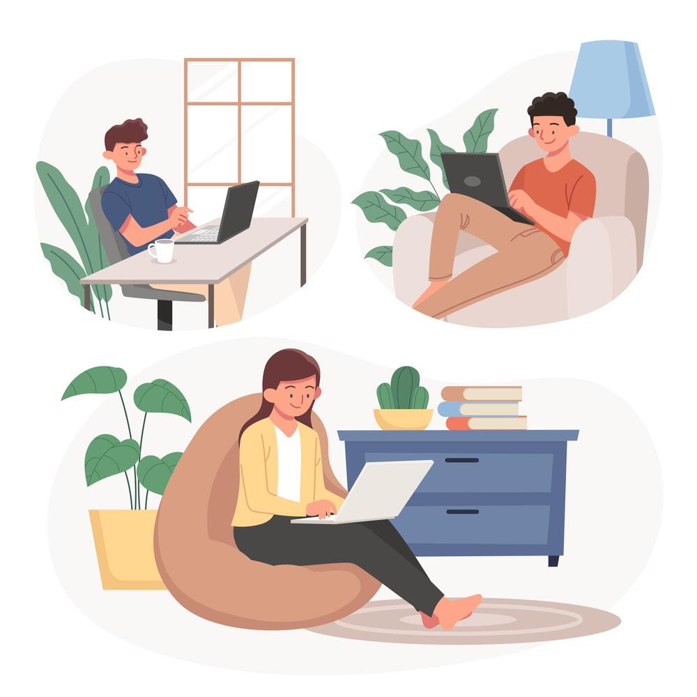 Figure 1. Working from homeSome members of your team choose to work from home a few days a week, while others prefer to work from the office every day. Another group would like to leave the office and live a thousand miles away from the headquarters.