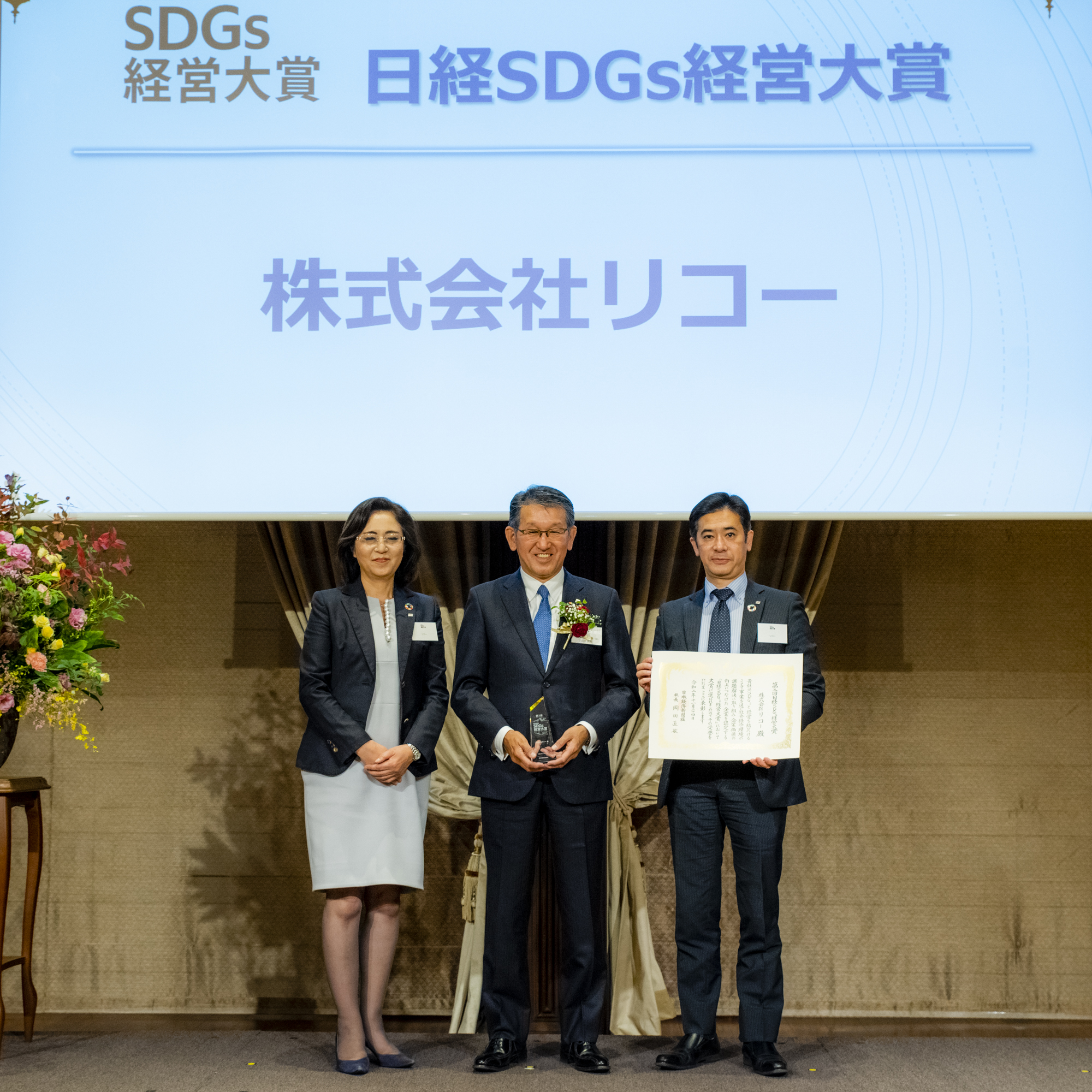 Tại lễ giao giải, Kunio Ito1 - Chủ tịch Hội đồng Giám khảo cho biết “Ricoh đã đạt điểm rất cao trong tất cả các hạng mục, và mỗi yếu tố đều được liên kết ở mức tốt nhất. Là một công ty hàng đầu trong lĩnh vực quản lý môi trường và đã được đặt nền móng từ rất lâu, nhưng giải thưởng này là một sự biểu dương với tư cách là một nhà SDGs.” Ngoài ra, như một sáng kiến đột phá, ông nói rằng Ricoh đang đẩy mạnh trong việc sử dụng năng lượng tái tạo, chẳng hạn như chuyển đổi tất cả điện năng được sử dụng trong sản xuất và lắp ráp máy in đa chức năng A3 sang 100% năng lượng tái tạo. Ricoh đã nâng cao mục tiêu giảm thải khí nhà kính (GHG) và đã được chứng nhận theo tiêu chuẩn mới “Mục tiêu 1.5°C ”bởi sáng kiến SBT (Mục tiêu dựa trên khoa học).