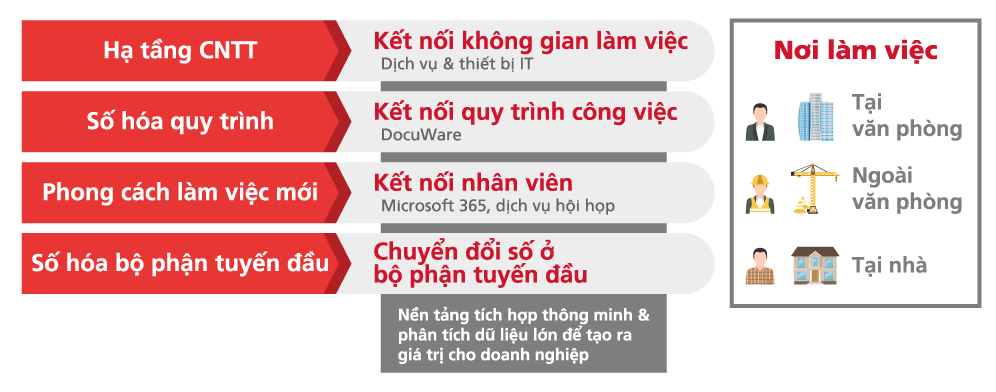 Ricoh sẽ đồng hành cùng doanh nghiệp Kiến tạo môi trường làm việc số thông qua các giải pháp và dịch vụ:
