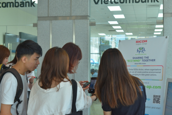 Để lan tỏa „Tinh thần xanh“ của Ricoh, bên cạnh ccas sự kiện trực tuyến và hình ảnh trên mạng xã hội, chúng tôi cũng đã tổ chức sự kiện tại tòa nhà E-town Central vào ngày 5 tháng 6 năm 2020. Tại sự kiện, chúng tôi đã thu hút sự tham gia của nhiều tổ chức và các công ty khác nhau. Bằng việc cam kết hành động vì môi trường trên website, cũng như chia sẻ những hành động này trên mạng xã hội, tinh thần vì môi trường ngày càng được lan rộng hơn nữa, hướng đến một xã hội tốt đẹp hơn.